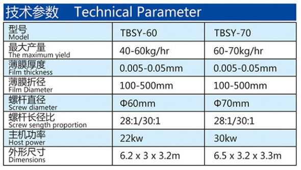吹制各種規(guī)格的低密度聚乙烯、高密度聚乙烯和線性低密度聚乙烯塑料薄膜,廣泛應(yīng)用于食品百貨、日用、化工、針紡品、購物禮袋和工業(yè)包裝。機(jī)筒、螺桿采用38CrMoAl合金材料經(jīng)氮化處理精密加工而成,具有很好的耐磨和耐腐蝕性。