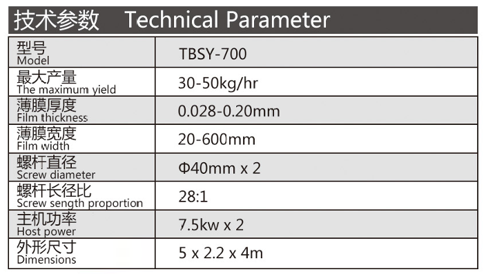 吹制各種規格的低密度聚乙烯、高密度聚乙烯和線性低密度聚乙烯塑料薄膜,廣泛應用于食品百貨、日用、化工、針紡品、購物禮袋和工業包裝。機筒、螺桿采用38CrMOAI合金材料經氮化處理精密加工而成具有很好的耐磨和耐腐蝕性。